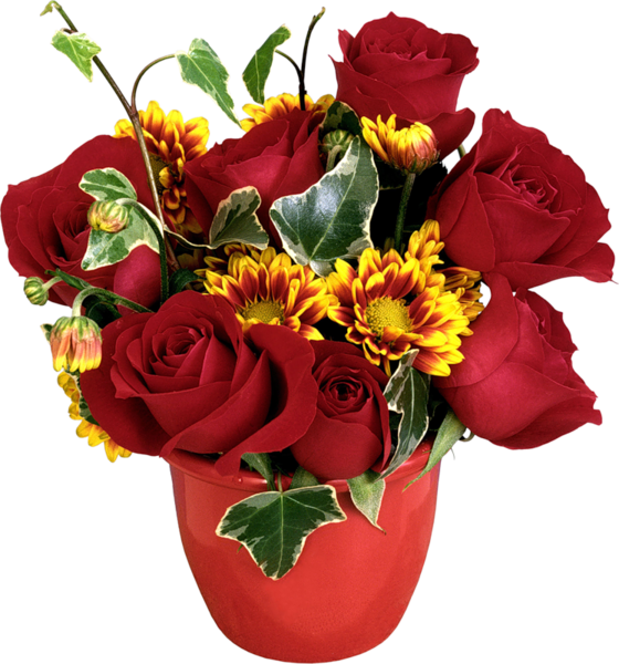 red roses in pots
